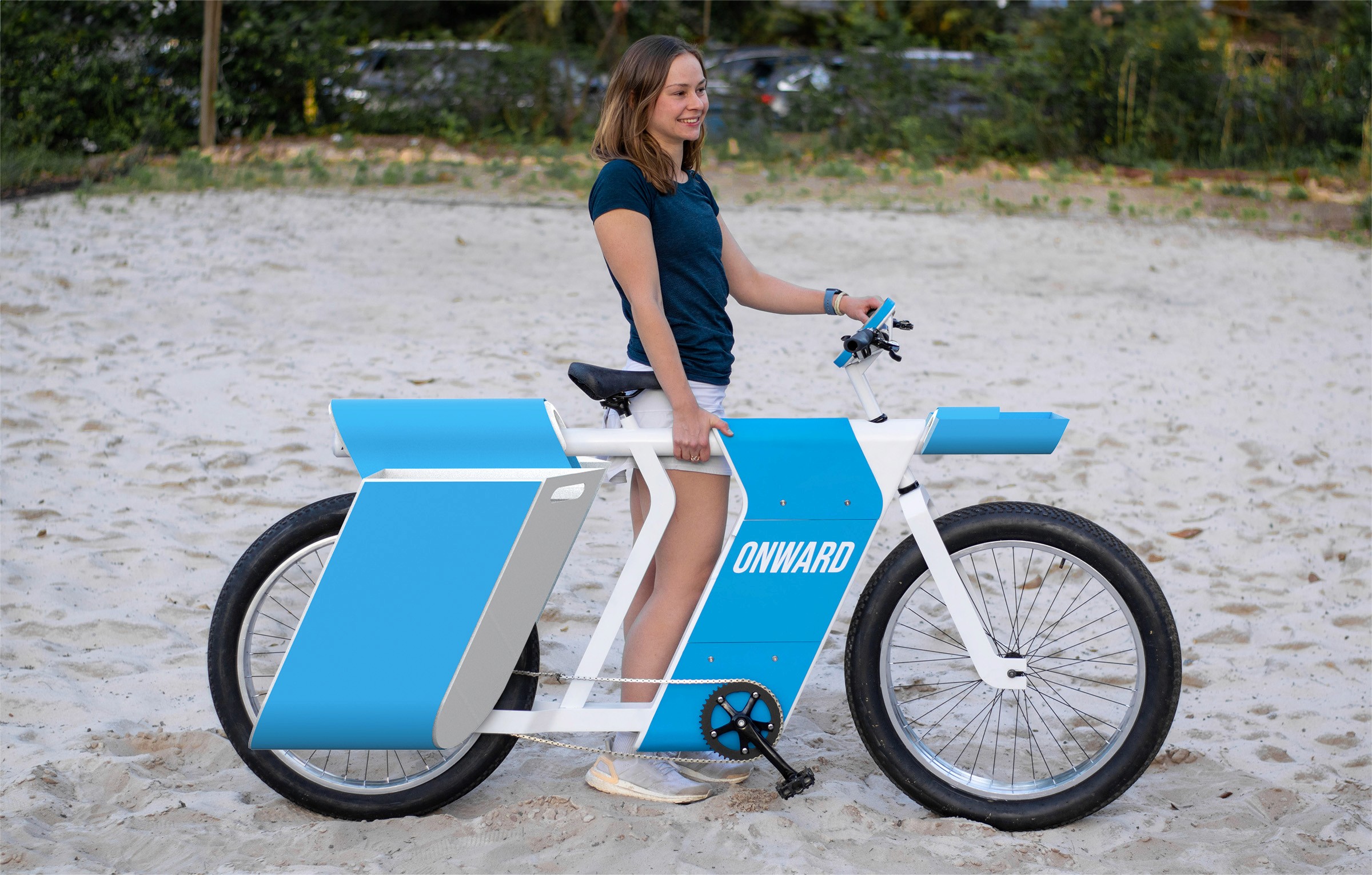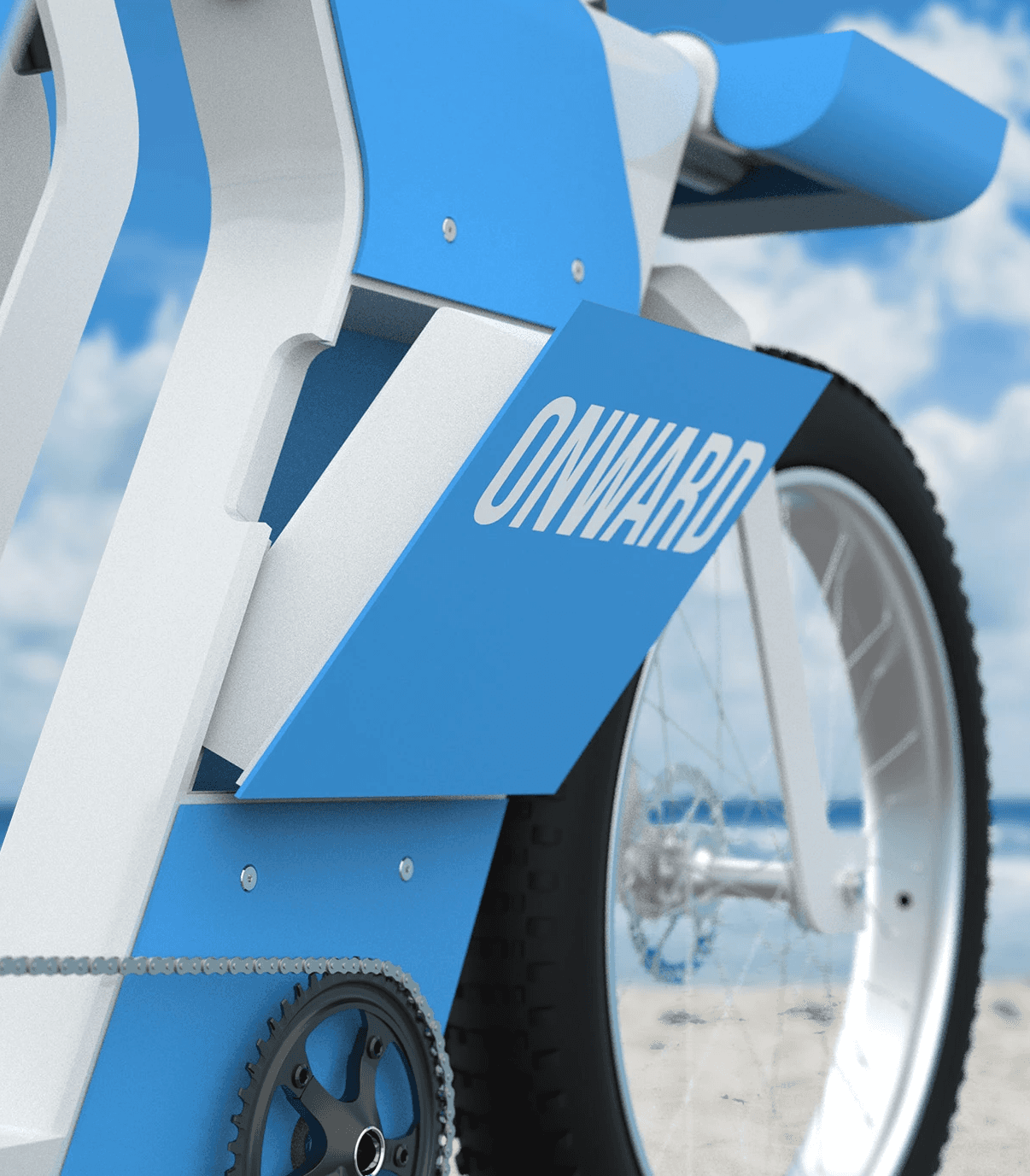 A fat-tire electric long-bike engineered for the unique demands of beach cleanup. The pedal-assist drivetrain, AI-enabled trash sorting, and modular accessory system reduces volunteer strain, simplifies data collection, and increases operational efficiency.